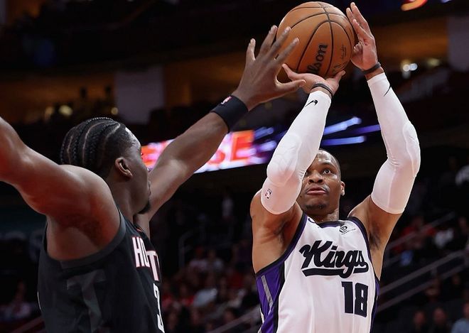 去年休赛期,威少跳出合同后无人问津,直到训练营开启之后,他才与国王队签下一份1年363万美金的无保障老将底薪合同。对于威少而言,这份无保障老将底薪合同不算体面,却是他续写NBA生涯的救命稻草!不幸的是,国王队不是争冠球队,比想象中的还要烂。截至目前,国王队仅取得14胜47负,排在西部倒数第1位,这也是联盟最差战绩。幸运的是,威少在国王队抓住了机会,从替补打到首发,重新扮演起球队领袖的角色,频频制造惊喜!