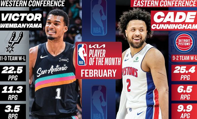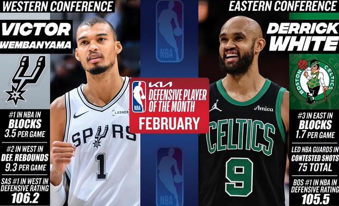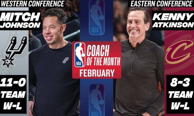 NBA常规赛进入冲刺阶段,在过去一个月的较量中,联盟30支球队朝着既定目标迈进,老中青三代球星各施所长,交相辉映。就在今天,NBA官方公布了2月东西部月最佳奖项,其中,骑士主帅阿特金森和马刺主帅米奇当选月最佳主帅,CC和文班亚马当选月最佳球员,怀特和文班亚马当选月最佳防守球员,克神和哈珀当选月最佳新秀。总体而言,这份月最佳获奖名单完美呈现了2月份最佳主帅、最佳球员、最佳防守球员以及最佳新秀的表现,实至名归。
