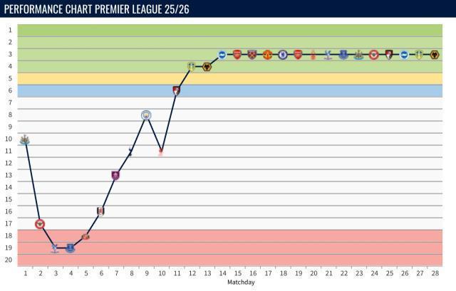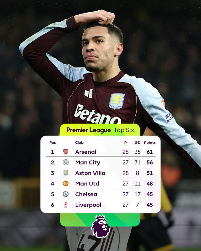 赛后BBC的标题煞有介事地写道:“埃梅里冠军梦碎,但维拉能保住英超前五吗?”没错,维拉是一度接近榜首,但很快被阿森纳一战打蔫——现在同场次落后枪手10分——以他们的阵容深度,几乎没人认真把他们放入争冠序列。
