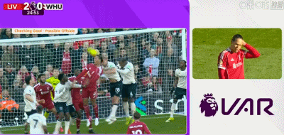 第24分钟,索博斯洛伊开出角球,范戴克头球建功,利物浦2-0西汉姆联