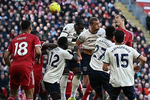 吃别人嚼剩的馍,味道显然不必期待,但绝对垫饥。整个上半时,利物浦预期进球只有0.73个,和对手的0.71个几无差距,小比分领先或者平局,或许是更贴切的结果,但45分钟刚过,西汉姆便几近道心破碎,为啥?利物浦用几乎一模一样的任意球模板,连下三城。倘若首球尚可归咎于客队二度解围不力,让外围的赫拉芬贝赫眼疾脚快找到了埃基蒂克,那么第二个角球丢球,着实是毁灭性打击——中路的范戴克抢点后蹭时已被客队后卫上手拉拽,身前还有绍切克这尊高塔,属于硬生生在对方禁区力劈华山,防守无所不用其极还没法阻止荷兰人破门,这球还咋踢?荷兰人英超进球已达28个,有生之年赶超特里的41球固然难度极高,但历史第二的位子能坐不少年。